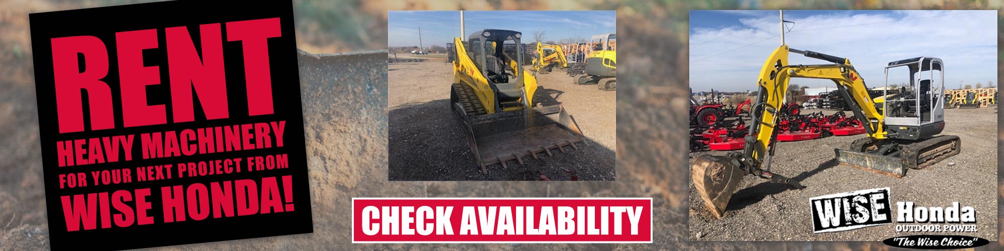 Wise Honda in Wise County specializes in a variety of vehicles including: SxS Vehicles, ATVs, Offroad Motorcycles, Street Motorcycles, and Scooters for Gravely, Ariens, Branson, Honda, Walker, Makita, EFCO, Wright, and Maruyama. Power Equipment We stock both new and used vehicles and work with customers on their trade in and financing. Wise Honda Decatur TX also has a great service department to keep your vehicle in tip top shape as well as a parts department if you're a DIYer.